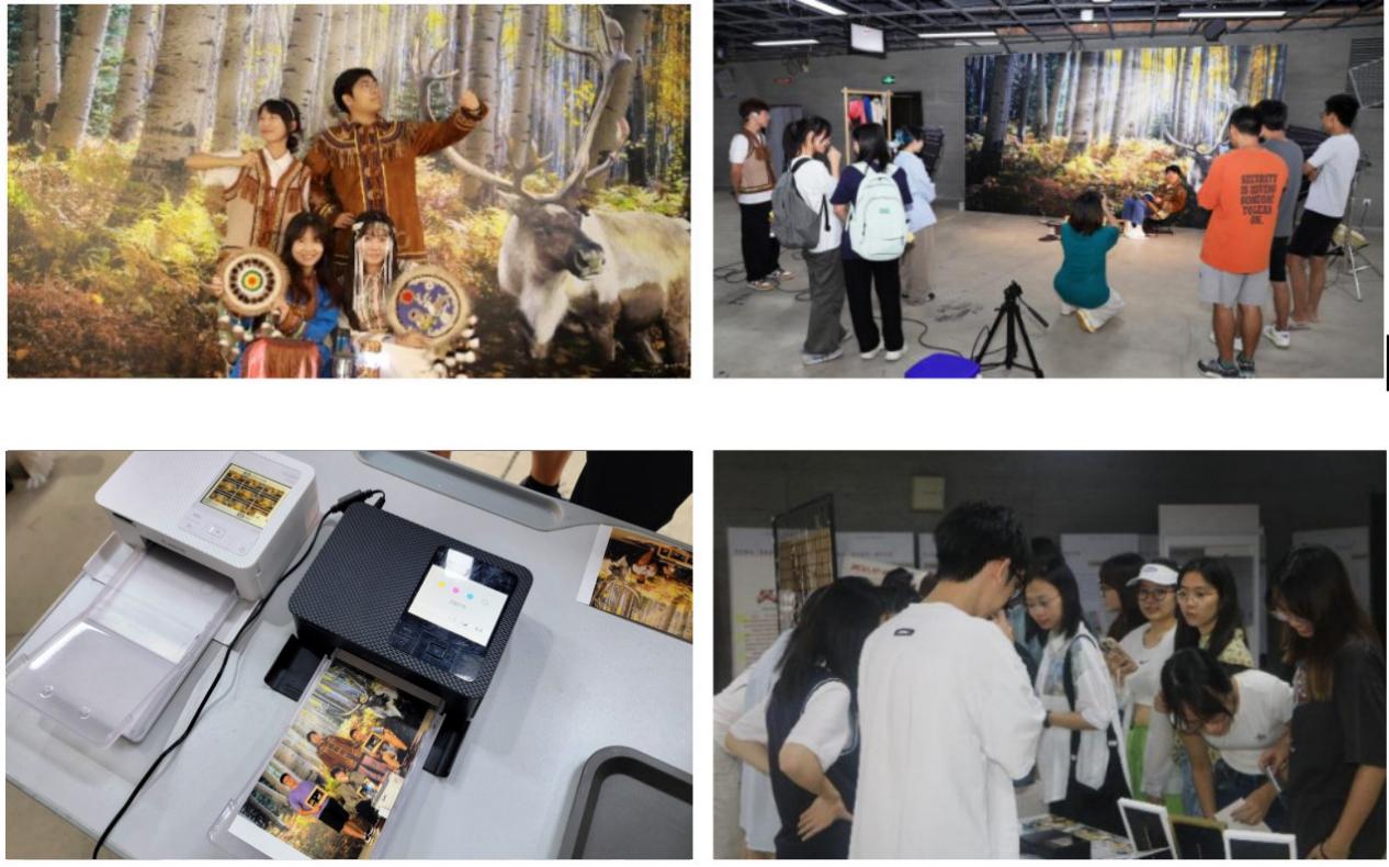 展览体验活动的一大亮点是,参观者可穿上现场提供的鄂温克族传统服饰,在别具地域风情的大兴安岭深处的森林场景,拍摄并打印专属个人的精美写真照片,留存关于鄂温克民族服饰体验的美好回忆。该体验活动也吸引了众多师生前往参与民族服饰写真打卡,活动现场气氛火爆、反响积极。