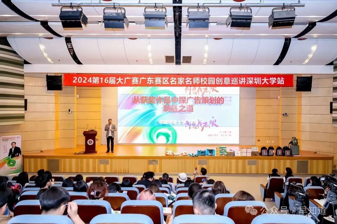 五月的深圳,正值凤凰花开,各大高校师生再次相约深大,共赴创意盛会。5月13日下午,第16届全国大学生广告艺术大赛广东赛区名家名师校园创意巡讲会在深圳大学隆重举行。本次活动由大广赛全国组委会组织,广东省教育厅、大广赛广东赛区组委会主办,深圳大学传播学院、深圳大学国家级传媒实验教学示范中心承办。